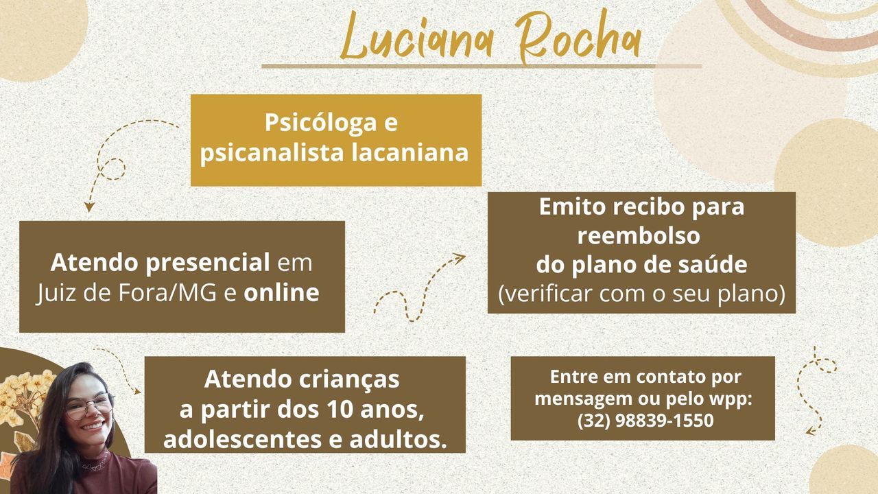 UM POUCO SOBRE MIM: Sou psicóloga e psicanalista lacaniana, graduada em Psicologia em 2019 pela Universidade Federal de Juiz de Fora e pós-graduada em Psicanálise e Saúde Mental. Além de atuar na clínica, também atuei em instituições sociais, realizando acompanhamento de famílias, crianças e adolescentes em situação de vulnerabilidade, e também em uma instituição de saúde mental - CAPS. Hoje atuo apenas com atendimentos clínicos, atendendo adolescentes e adultos.